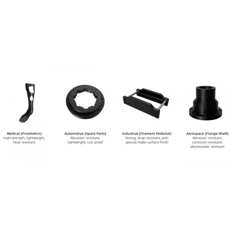 Filament polyamide offrant une grande résistance chimique (huiles-graisses-hydrocarbures), aux impacts et thermique, il offre une bonne rigidité, une stabilité dimensionnelle, des propriétés de basse friction ainsi qu’une qualité de finition remarquable. Il devient très endurant grâce à l’apport de la fibre de carbone.