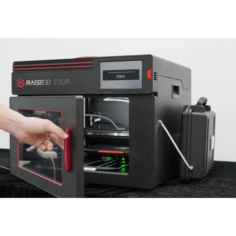 La modèle E2CF d'une capacité de 17L (19L en double buse) est une évolution renforcée de la RAISE E2, qui vous permet d'imprimer des matières techniques fibrées avec un environnement dédié (buses en carbure de silicium et extrudeur spécifiques, profils spécifiques, gestion de matériaux supports spécifiques, drybox,...). Le PA12 CF est déjà disponible et sera prochainement rejoint par les PPA, PPS et PET CF).