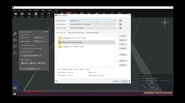 En complément, IdeaMaker, le logiciel de traitement de vos fichiers STL, détient les profils d'impression adéquats avec un paramétrage particulier vous assurant la réussite parfaite de vos différents travaux.